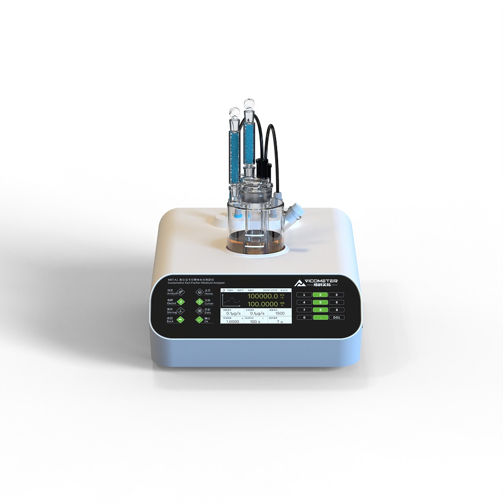 維科美拓WKT-A1"入門型"卡爾費(fèi)休微量水分測定儀利用的是卡爾費(fèi)休庫侖法(電量法)的原理去快速測定樣品中的微量水分,測定水分低至1ppm,可以在1分鐘內(nèi)測定出固體、液體、粉體的微量水分。人機(jī)界面友好,128*64藍(lán)屏液晶顯示,全中文菜單,檢測電路采用了數(shù)字處理技術(shù),克服了傳統(tǒng)儀器存在的溫度漂移和電源電壓波動(dòng)對(duì)測試過程的干擾,提高了測試的精度和靈敏度。整機(jī)采用無繼電器工藝設(shè)計(jì),消除了記憶繼電器觸點(diǎn)氧化帶來的隱患,延長了儀器的使用壽命。廣泛應(yīng)用在化工、石油、醫(yī)藥、電力、食品、科研、檢測等行業(yè)。